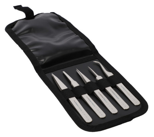 9855 Set of 5 Precision Tweezers, Tip Styles SS-SA, 2A-SA, 7A-SA, AA-SA