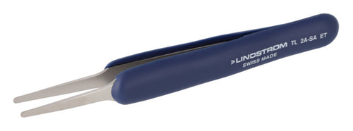 2A-SA-ET Stainless Steel Tweezers, Anti-Acid Anti-Magnetic Body with ESD Safe Handles with Straight, Very Fine, Round, Flat Tips, 125 mm - 4.92"