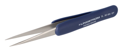 3-SA-ET Stainless Steel Tweezers, Anti-Acid Anti-Magnetic Body with ESD Safe Handles and Straight, Fine, Pointed Tips, 125 mm - 4.92"