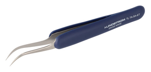 7A-SA-ET Stainless Steel Tweezers, Anti-Acid Anti-Magnetic Body with ESD Safe Handlesand Fine, Curved Tips, 120 mm - 4.72"